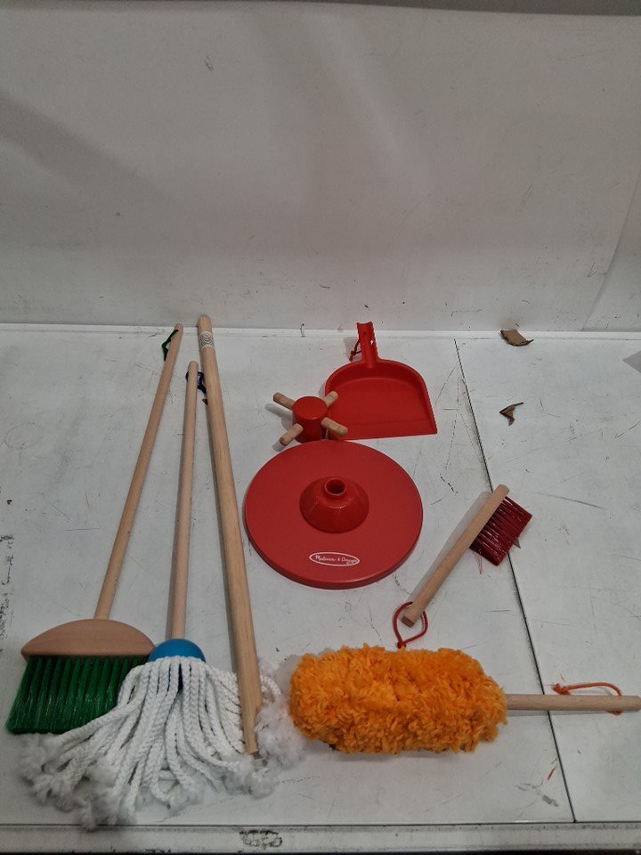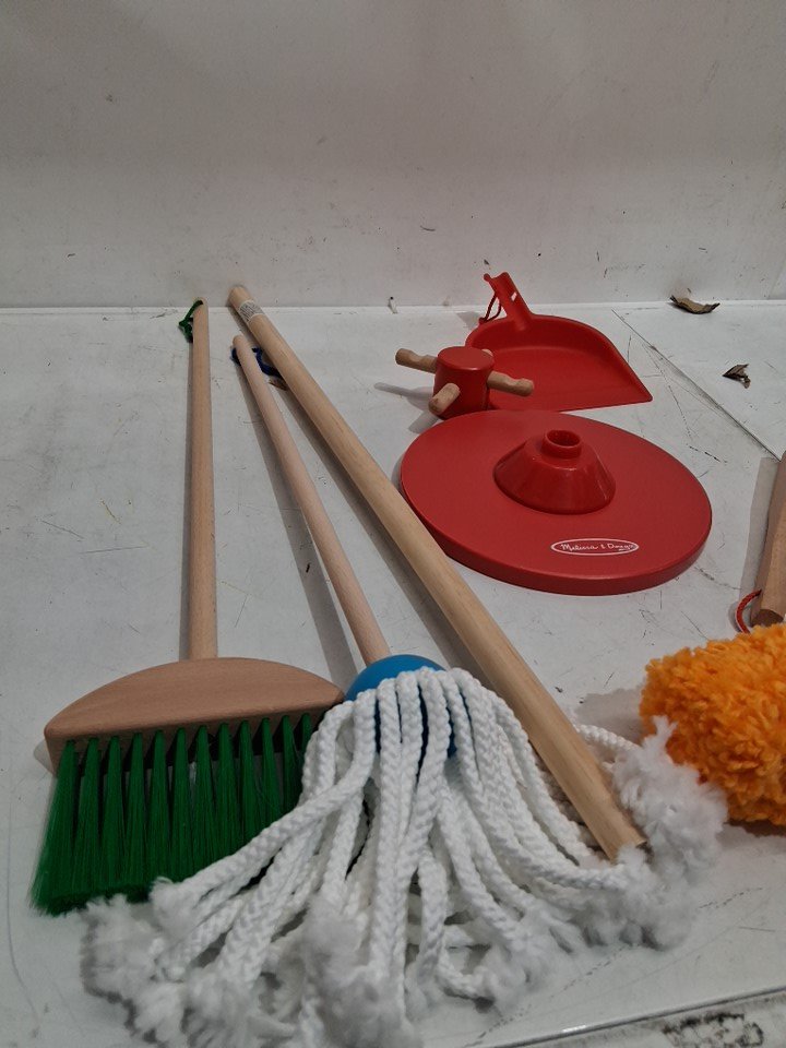 6PC MELISSA & DOUG LET’S PLAY HOUSE! DUST! SWEEP! MOP! PRETEND PLAY SET - KID-SIZED With BROOM, MOP, DUSTER, BRUSH, DUSTPAN, STORAGE STAND - MULTICOLOUR (MODEL: 96049)