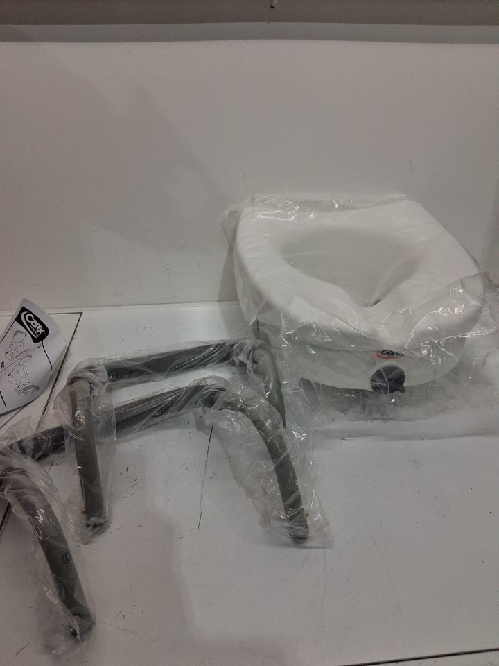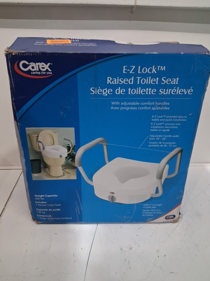 Carex E-Z Lock Raised Toilet Seat with Adjustable Armrests - white (model: b303 CA)