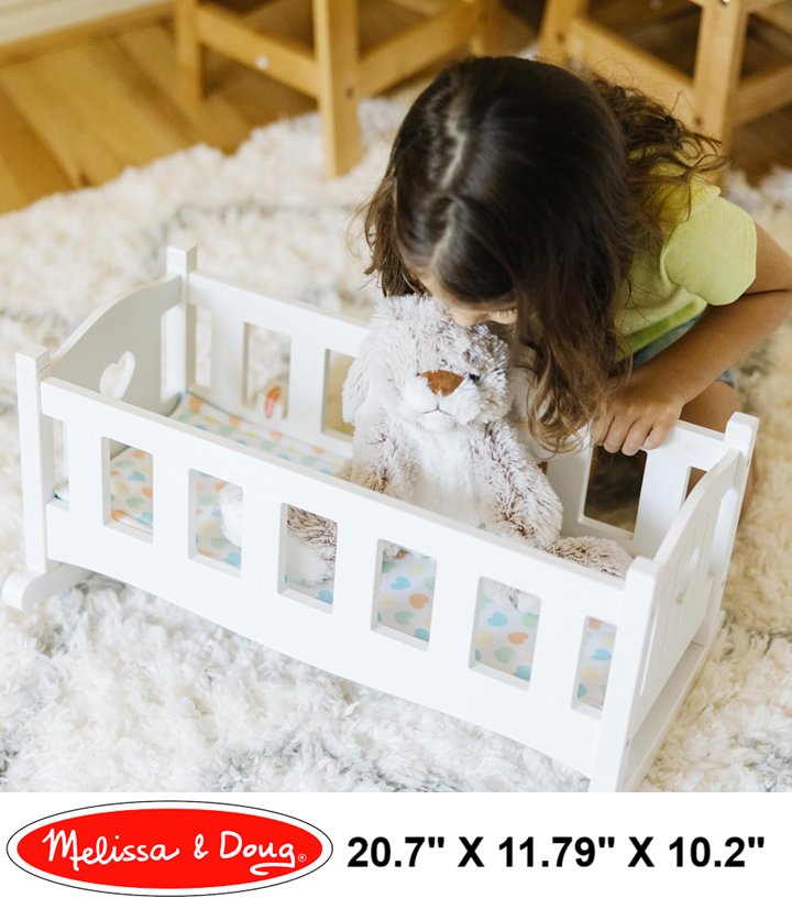 Melissa & Doug Mine to Love Wooden Play Cradle for Dolls, Stuffed Animals - 20.7"x11.79"x10.2" - white/hearts