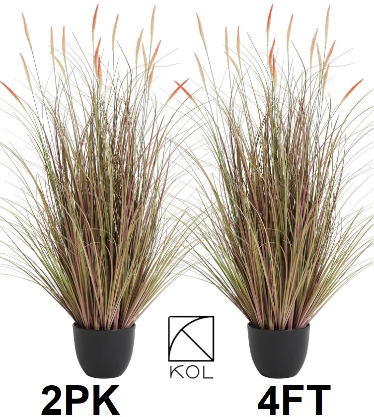 2pk kol artificial cattail grass decoration - 4ft - pink/black pot (model: ‎D463-03-KOL)