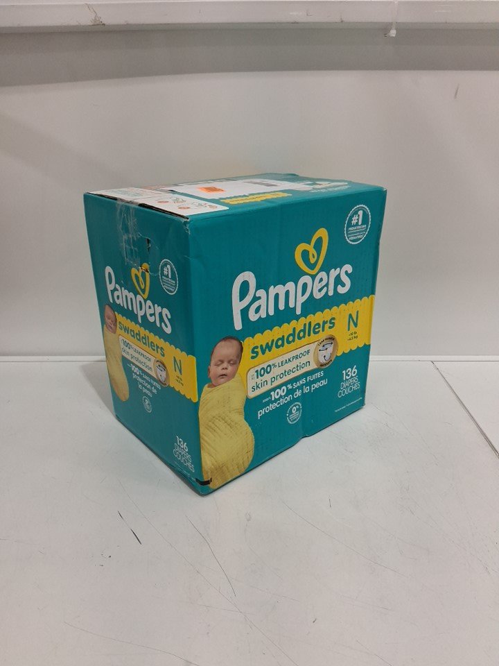 136PK PAMPERS SWADDLERS DIAPERS - NEWBORN SIZE 0