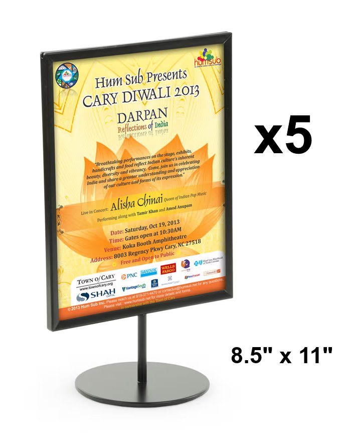 5 Countertop Sign Holder, Double Sided, Round Weighted Base - for 8.5" x 11" - blaCK