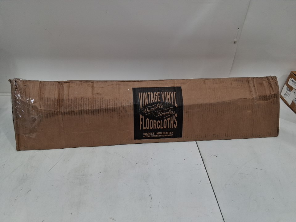 rig district vintage vinyl floor cloth rugs - 115" x 36"- vintage brown/tan