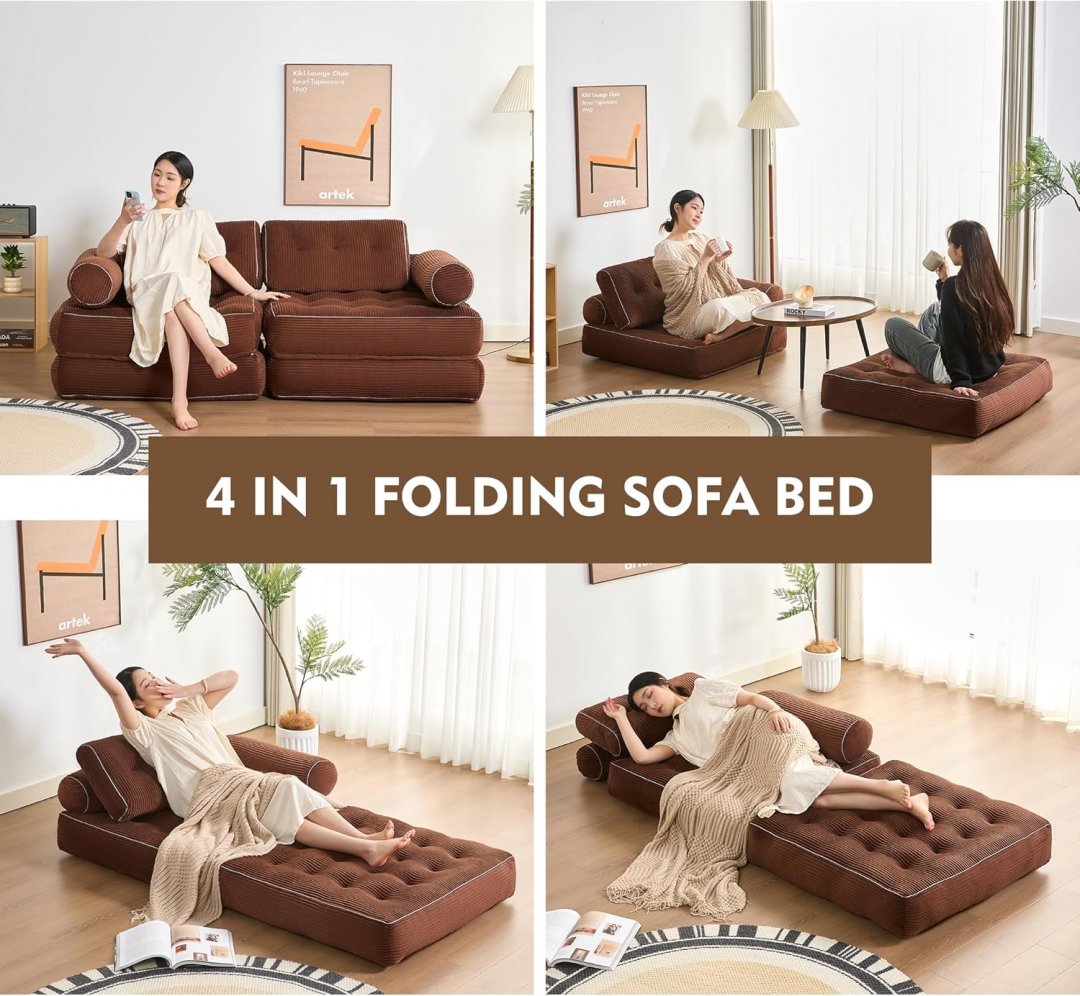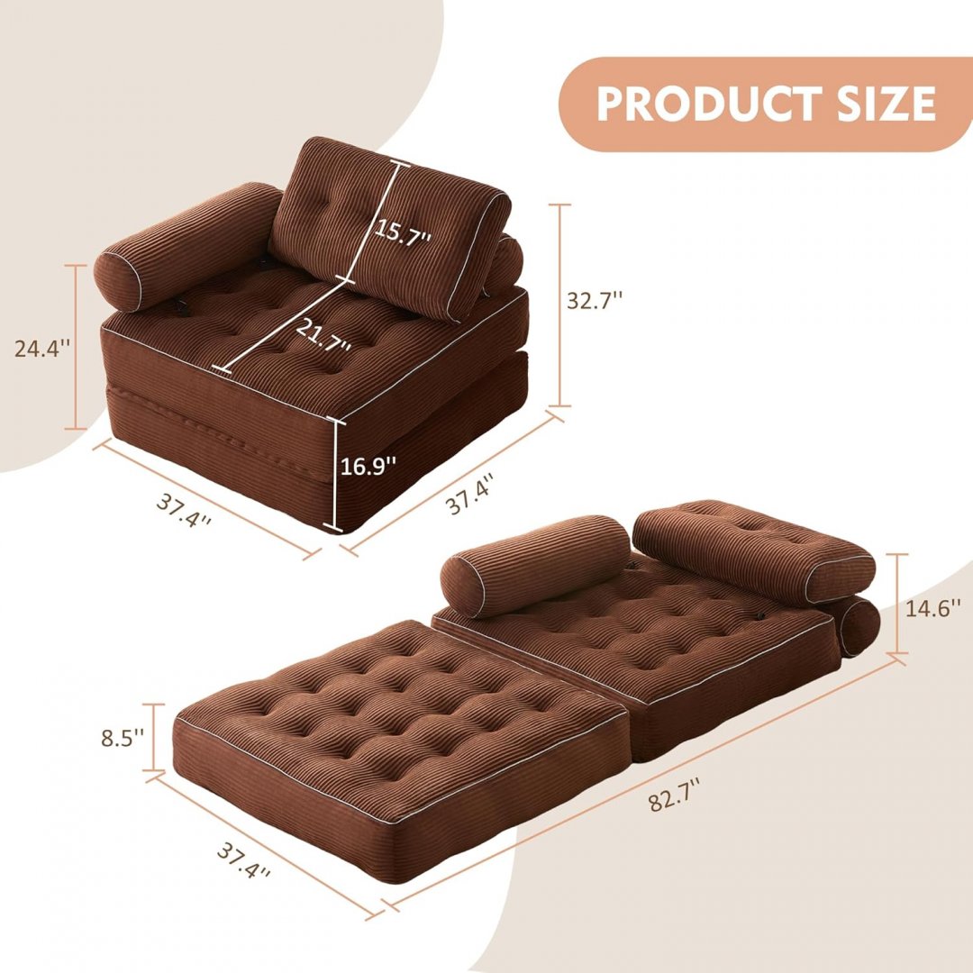 ejc Folding Chair Bed/Convertible Futon Couch - 37" x 24"(chair) - brown