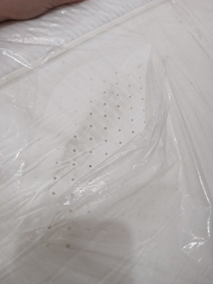The bag it comes in has some rips/holes that cause some debris and dirt to get onto the item. The top of the mattress appears new.