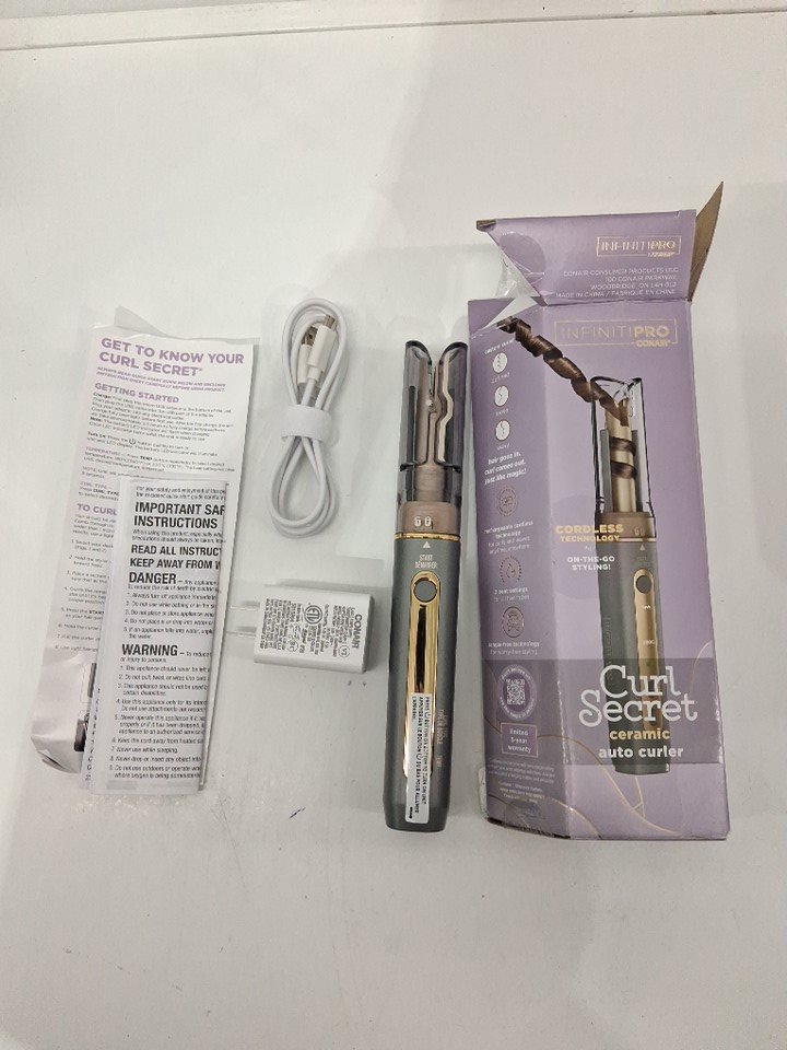 CONAIR INFINITIPRO CURL SECRET cordless CERAMIC AUTO CURLER, travel size - GREY/GOLD (model: cr520c)