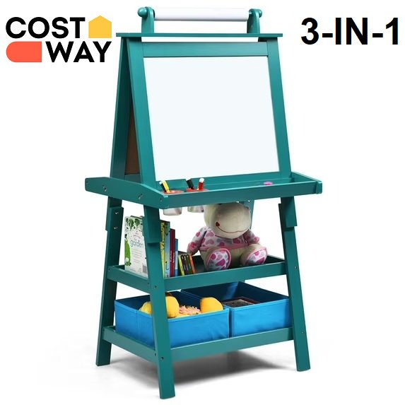 Costway 3 in 1 Double-Sided Wooden Kid's Art Easel Whiteboard - Blue (model: ty327442bl)