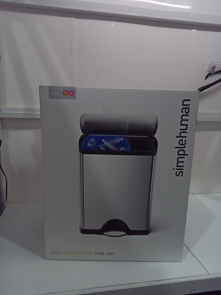 SIMPLEHUMAN STAINLESS STEEL DUAL COMPARTMENT RECTANGULAR RECYCLE AND TRASH BIN with SLOW AND SILENT CLOSE LID - 46l - SILVER (MODEL: CW1830)