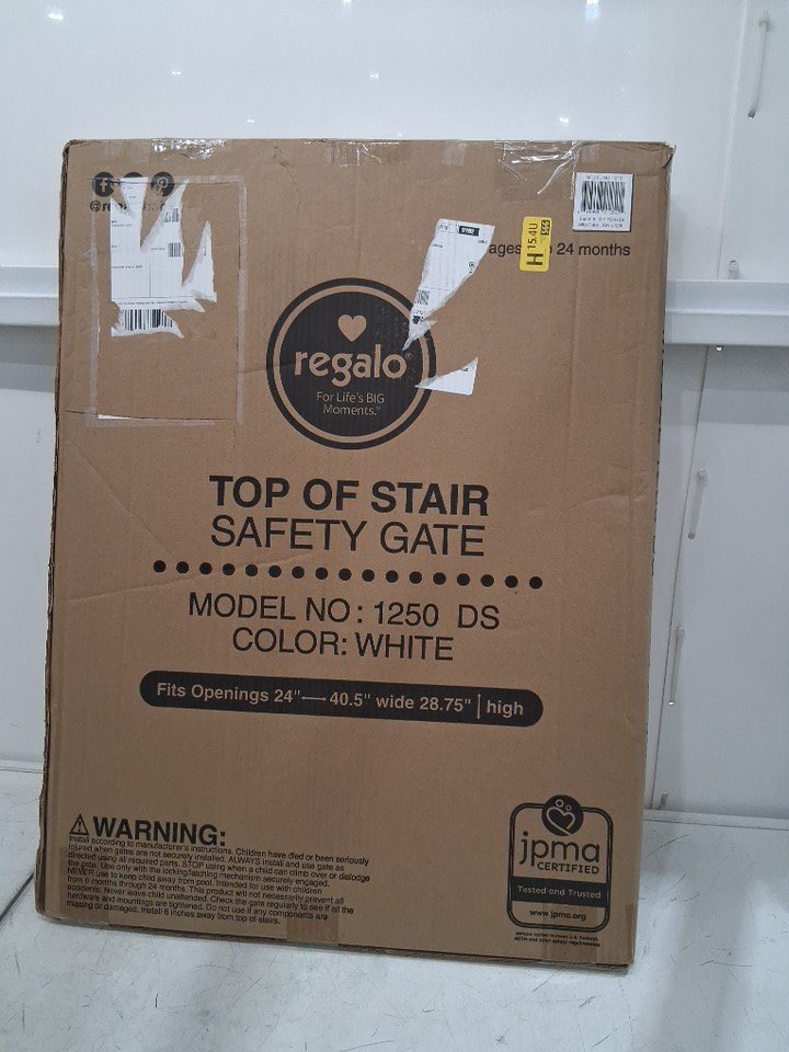 Regalo Extra Wide 2-in-1 Top of Stairway and Hallway Safety Gate with Mounting Kit - 29"x24"-40.5" - White (Model: 1250DS)