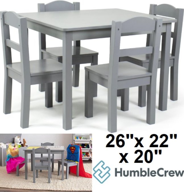 humble crew camden collection kids play chair and table set - 4 chairs, 1 table - 26" x 22" x 20" - grey (model: TC937)