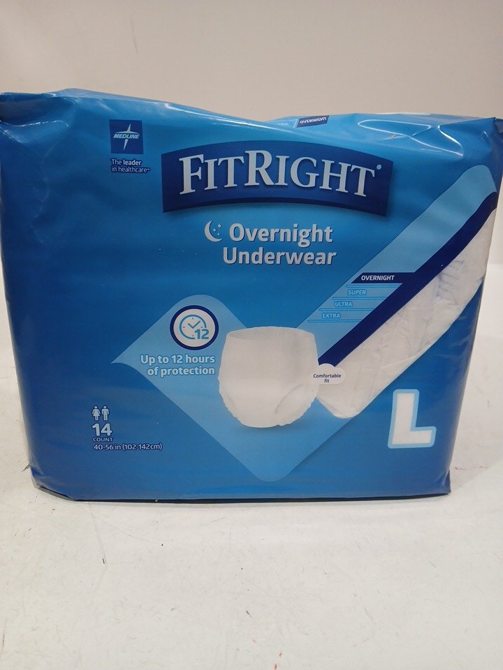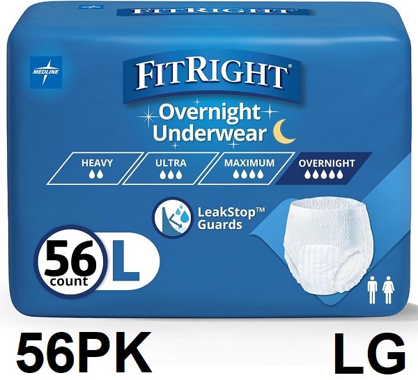 UNISEX FITRIGHT ADULT UNDERWEAR/DIAPERS - MAXIMUM OVERNIGHT ABSORBENCY - LARGE