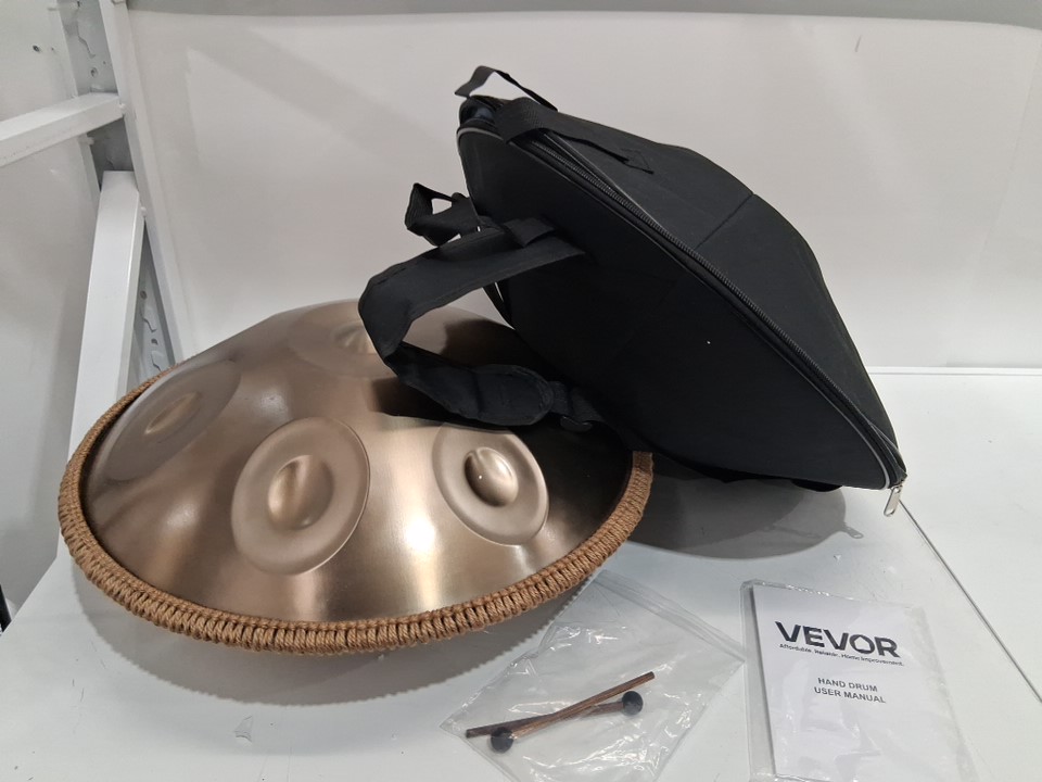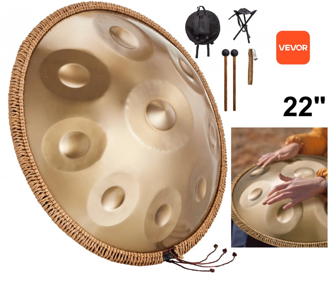 vevor handpan drum with mallets and accessories- 22", 9 notes, d minor, 440HZ- gold/brown (model: golden-9 tone sound-d major)
