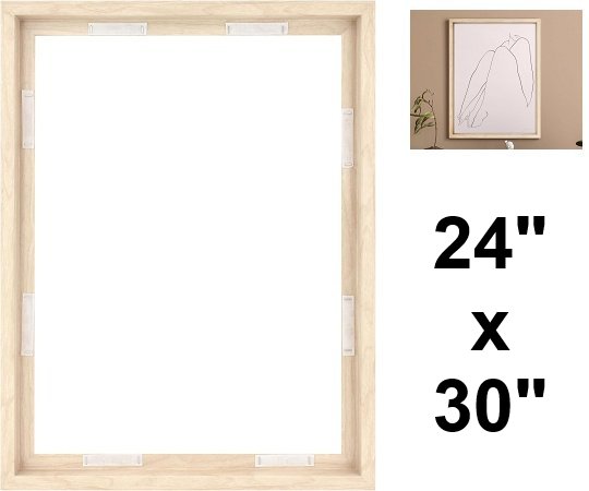 MCS canvas float wooden frame with Velcro adhesive for canvas paintings - 24" x 30" - natural woodgrain - (model: 67422)
