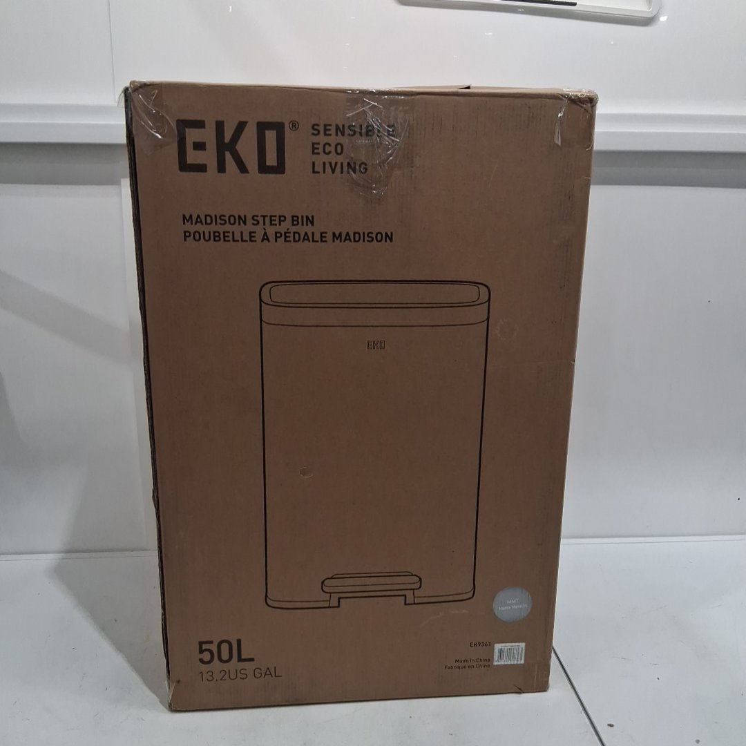 EKO Madison Step Trash Can with Liner - 50L (13.2 GALLONS) - STAINLESS STEEL matte metallic (MODEL: EK9361MT-50L)