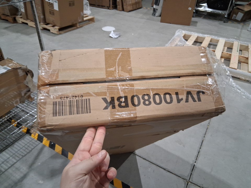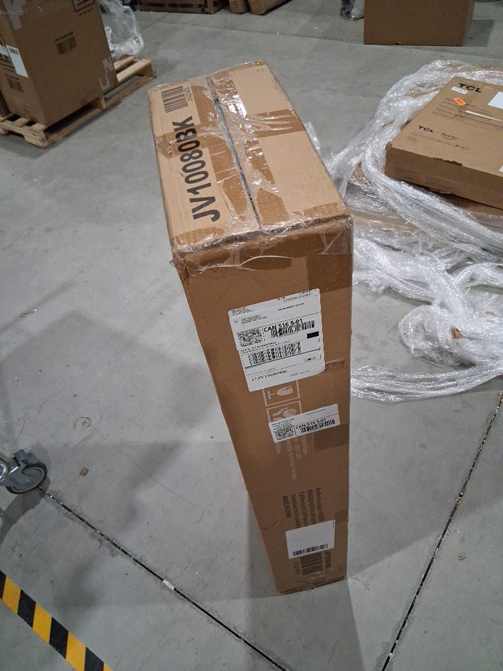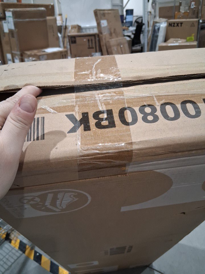 One end is missing the large piece of retail tape but the other tape remains intact still keeping the item sealed