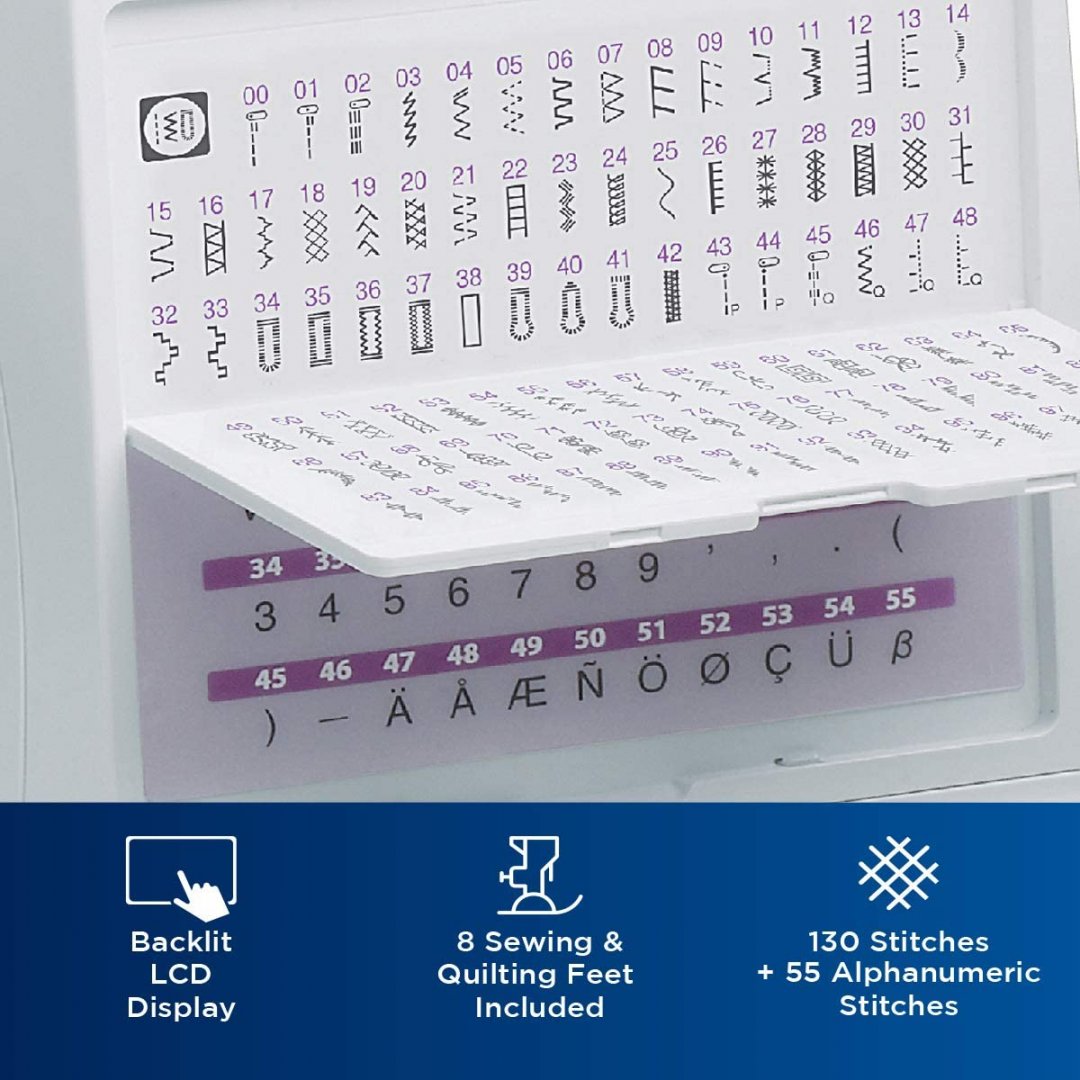 BROTHER COMPUTERIZED SEWING AND QUILTING MACHINE WITH 130 BUILT-IN STITCHES, 9 PRESSER FEET, SEWING FONT, WIDE TABLE (MODEL: HC1850)