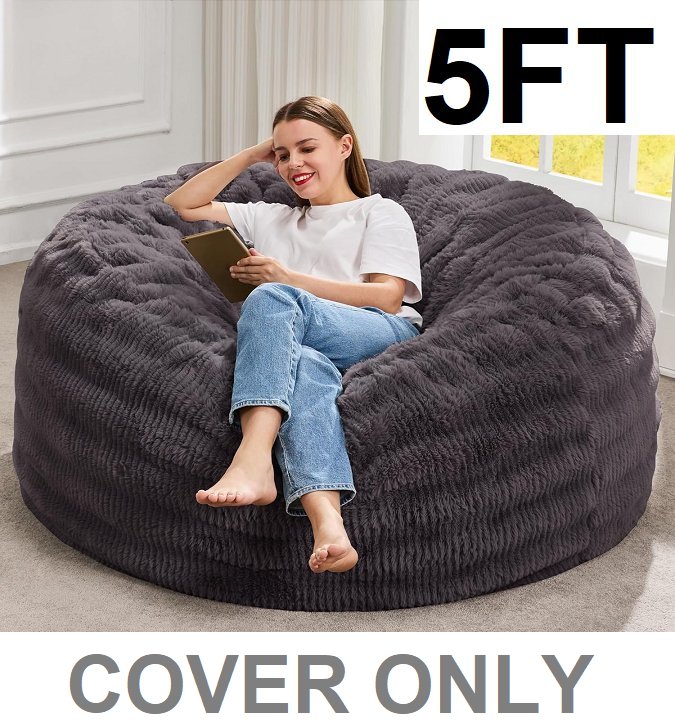 Hobestluk Bean Bag Chairs cover Beanbag Chair with Filler - 5ft - dark grey
