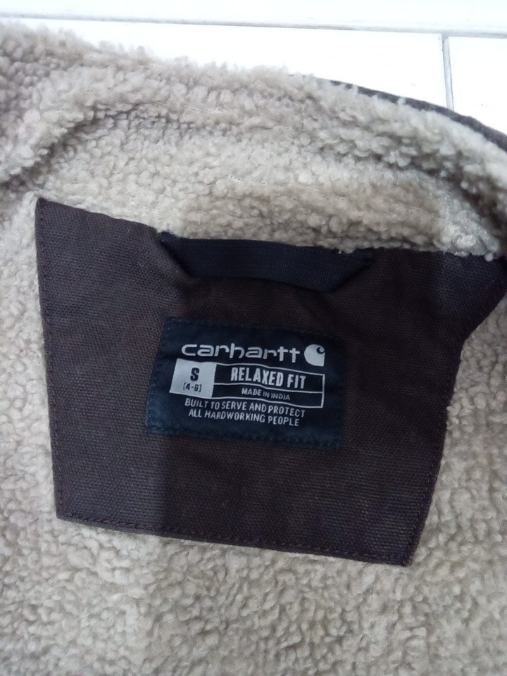 women's carhartt relaxed fit washed duck sherpa-lined mock-neck vest - small (4-6) - dark brown (model: ov4277-w)