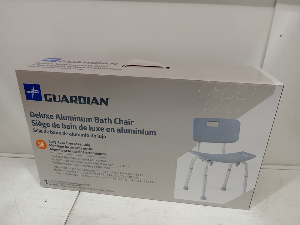 MEDLINE GUARDIAN BATH CHAIR WITH BACK AND SUCTION CUP FEET - HEIGHT ADJUSTABLE LEGS - 400LBS CAP - GREY (MODEL: G2-101KRX1)