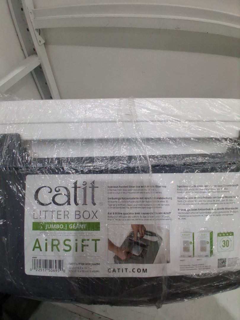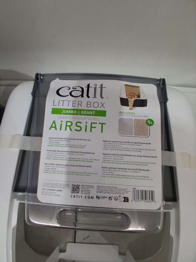 CATIT CLEAN JUMBO HOODED LITTER BOX WITH AIRSIFT AIR FILTER - 22.4" x 18.3" x 19.7" - GREY/white (model: 50695)