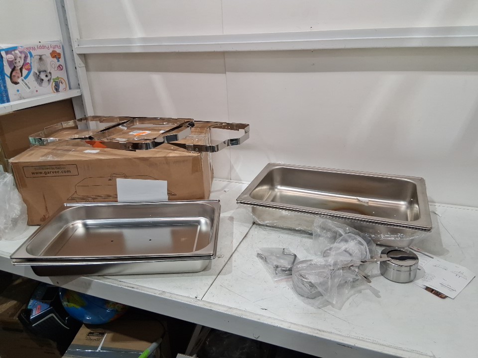 please note there are stains from previous use on the items. the item is also missing the long pieces that connect the feet. see photos.