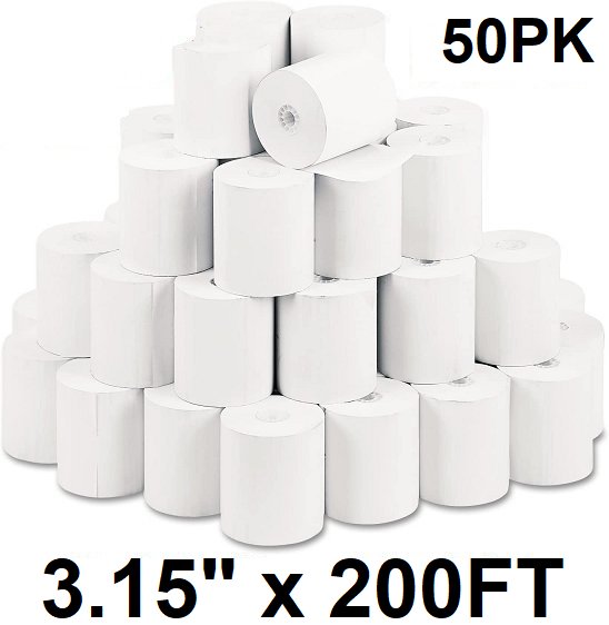 50PK PRP Thermal Paper Rolls for CASH REGISTER POS, 3.125" x 200FT - WHITE