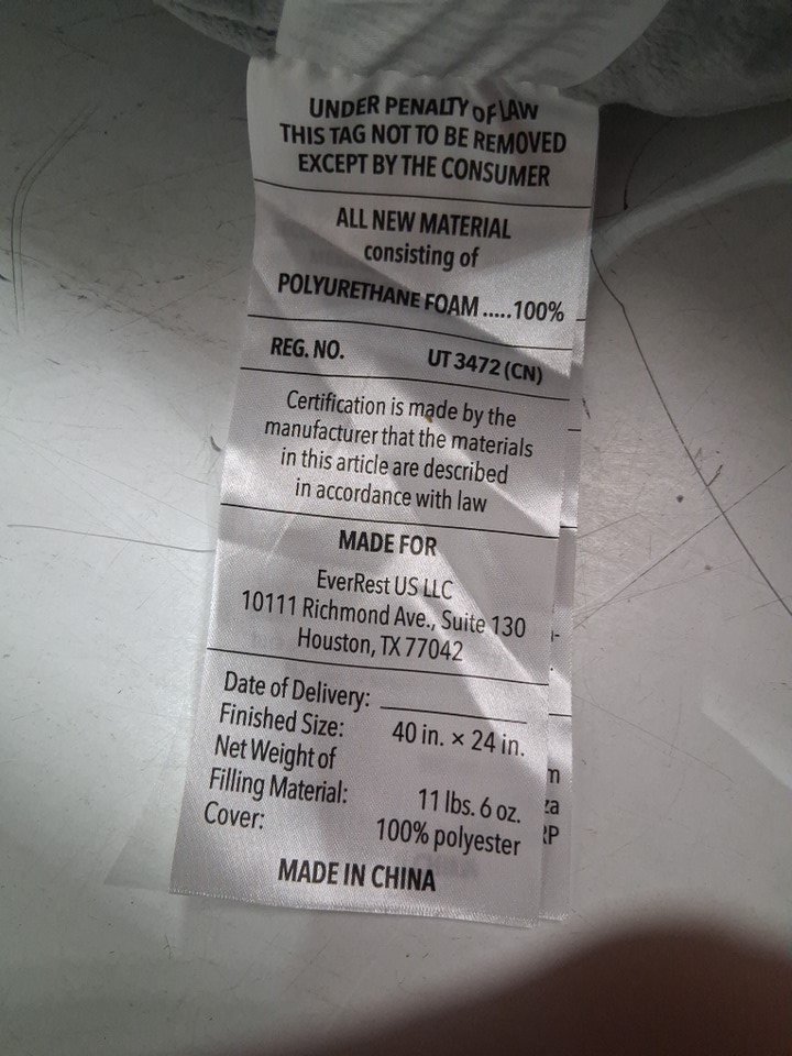 Linenspa Shredded Foam Reading Pillow - 40" x 24" - Stone grey (Model: lz26svsfrp)