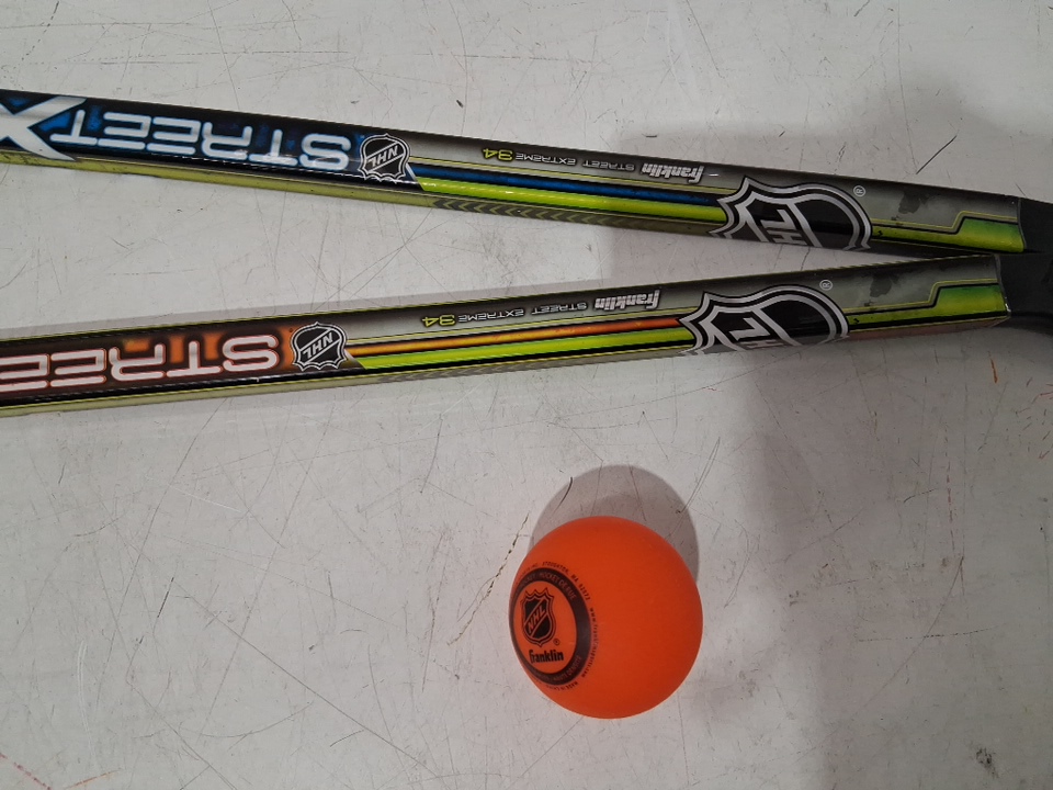 3pc kids franklin sports nhl certified street xtreme street hockey set with 2 mini sticks and one ball - 3ft (model: 14198X)