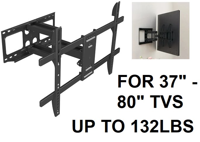 Brateck heavy duty full motion TV wall mount - For 37" to 80" Tvs - Up to 132lbs - Black (model: LPA69-466)