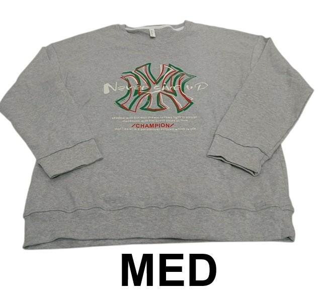 MEN'S "NEVER GIVE UP" FASHION CREW NECK SWEATER - MEDIUM - GREY