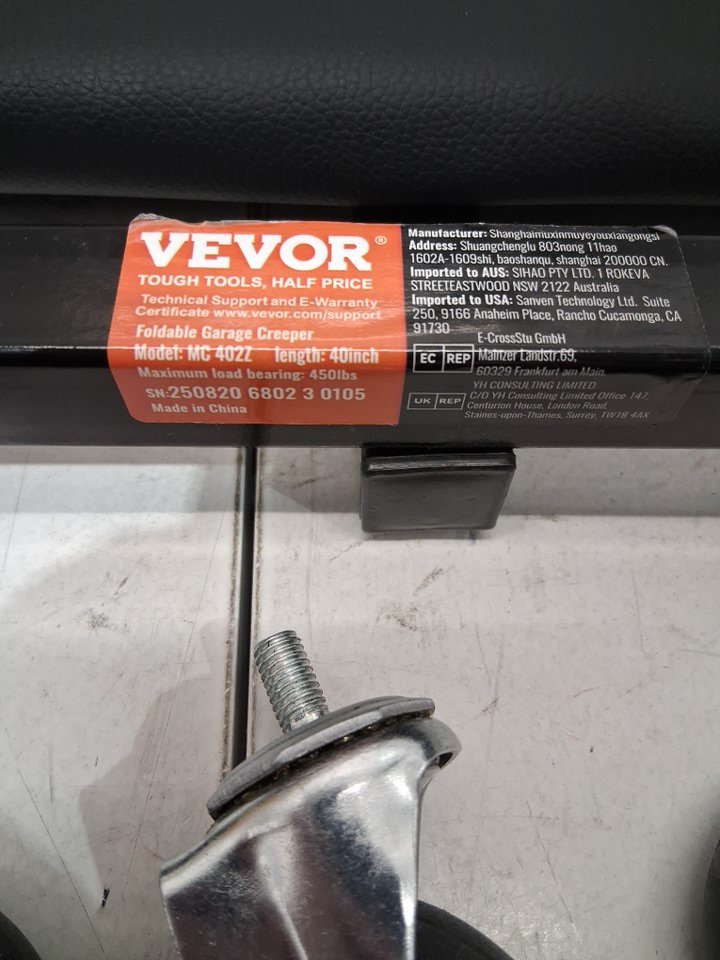 VEVOR 2-IN-1 ROLLING FOLDING CAR eZ-CREEPER SEAT STEEL & VINYL - 450LB CAP - BLACK (model: mc 402z)