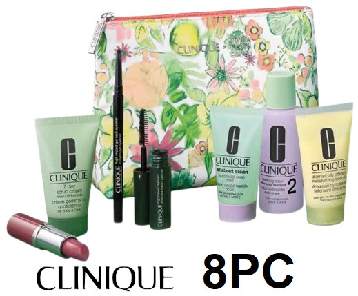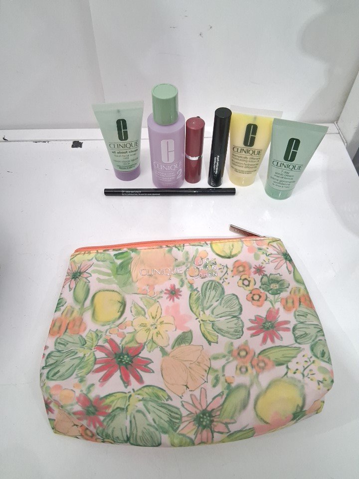 8pc Clinique jonathan cohen gift set with bag - assorted items - multicolored floral bag