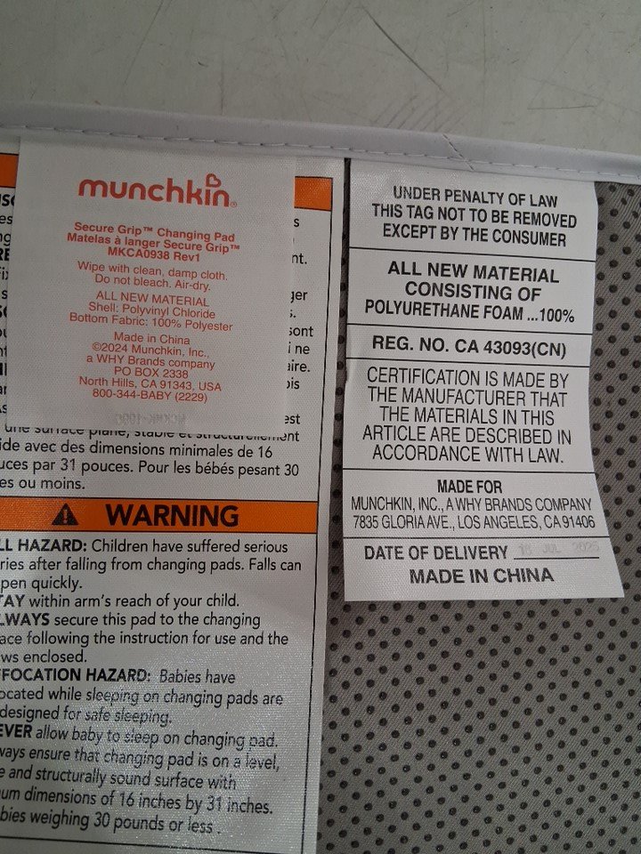 MUNCHKIN SECURE GRIP CHANGING PAD WITH SAFETY BELT - 16" x 31" - WHITE (MODEL: MKTR0068)