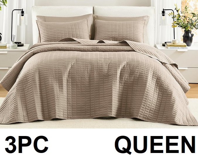 3PC Comfort spaces bedspread mini set - Oversized Queen (102" x 118") - Taupe (model: cs13-0399)