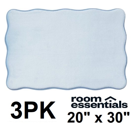 3pk Room Essentials Scalloped Machine Washable Cushion Foam Bath Rugs - 20" x 30" - Blue
