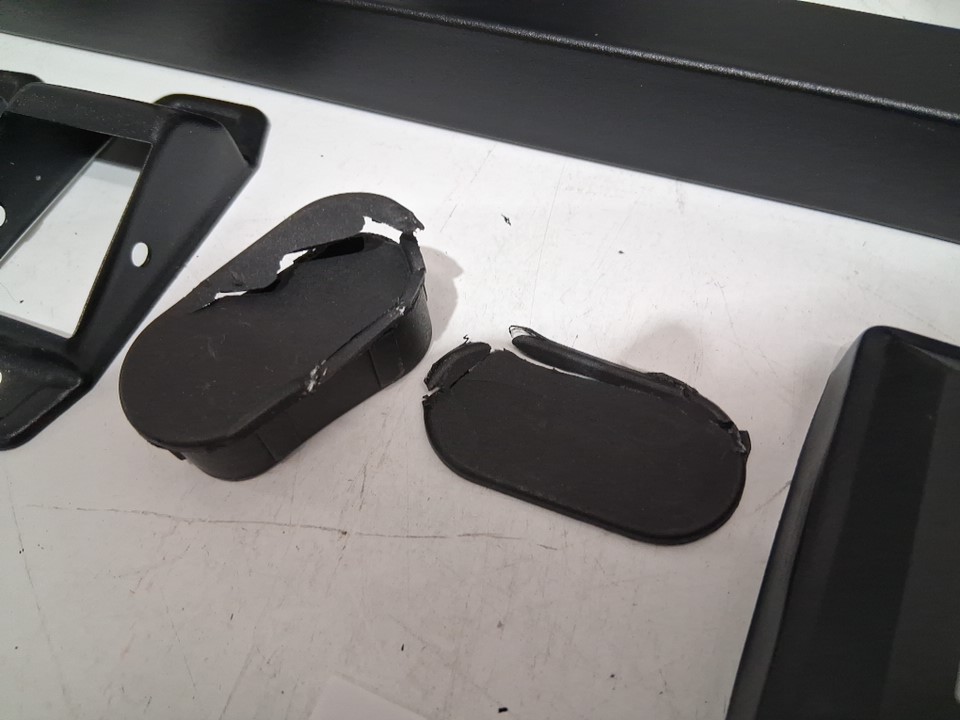 End Caps for the Rail are in Broken condition, needs Replacement. Some residue on main bar, see photos