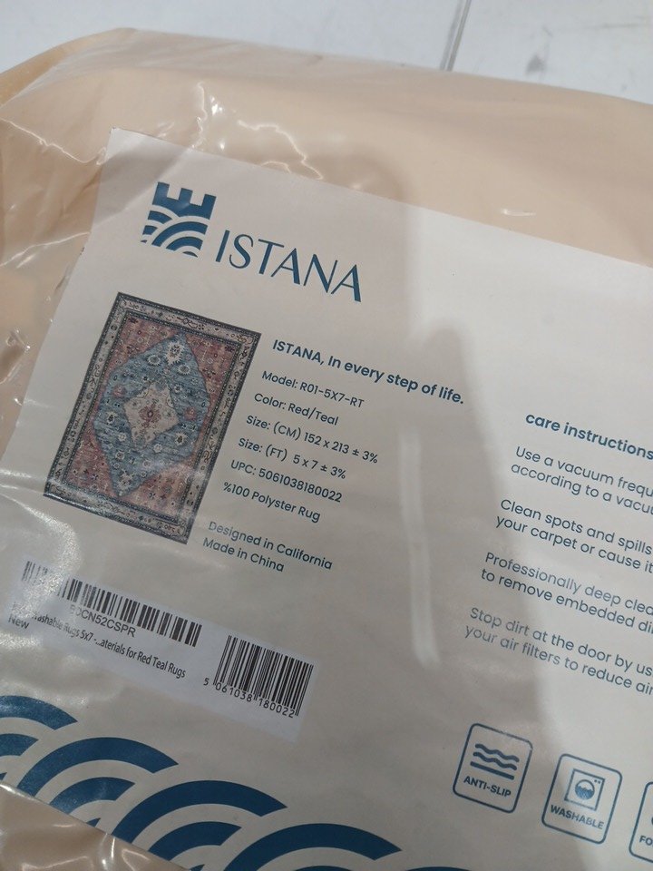 ISTANA washable area rug - 5ft x 7ft - red/teal - (style;R01-5X7-RT)