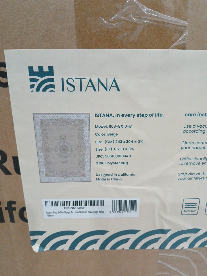 istana non slip machine Washable Area rug - 8ft x 10ft - beige (model: R03-8X10-B)