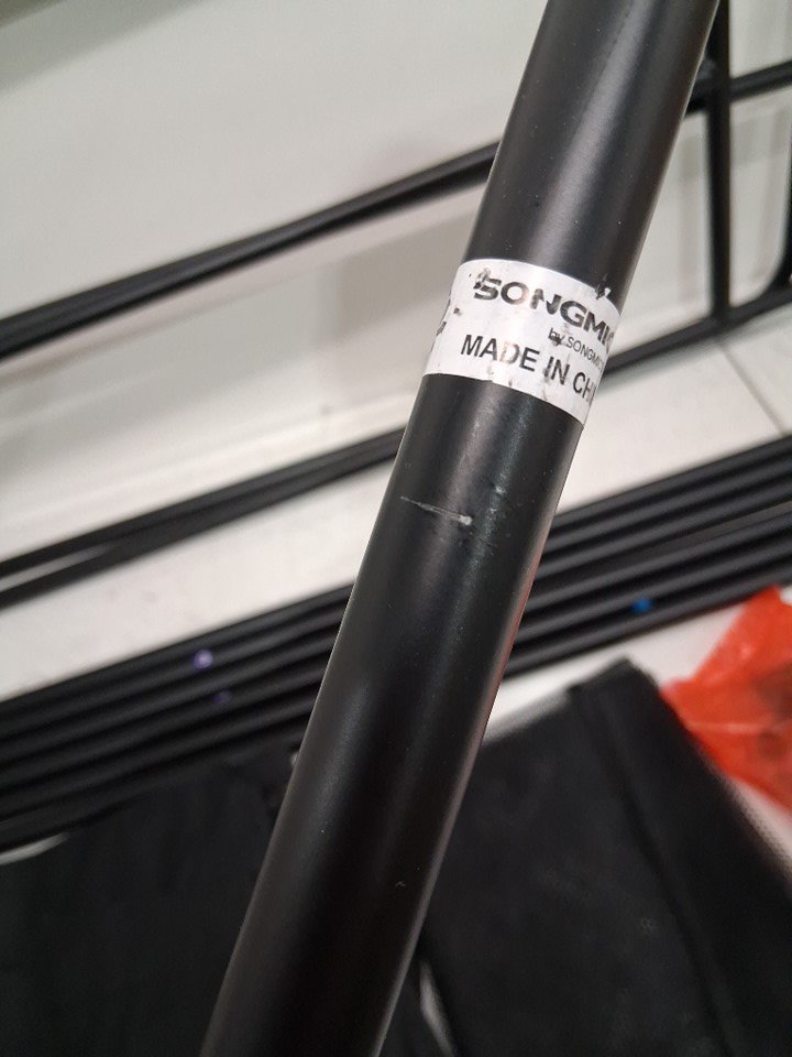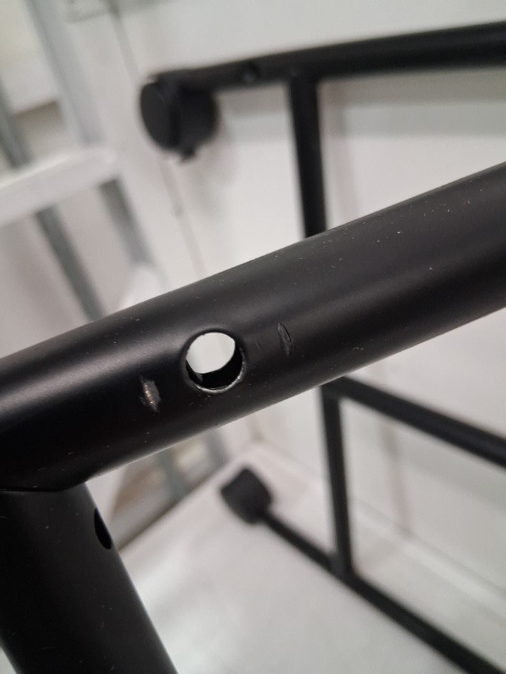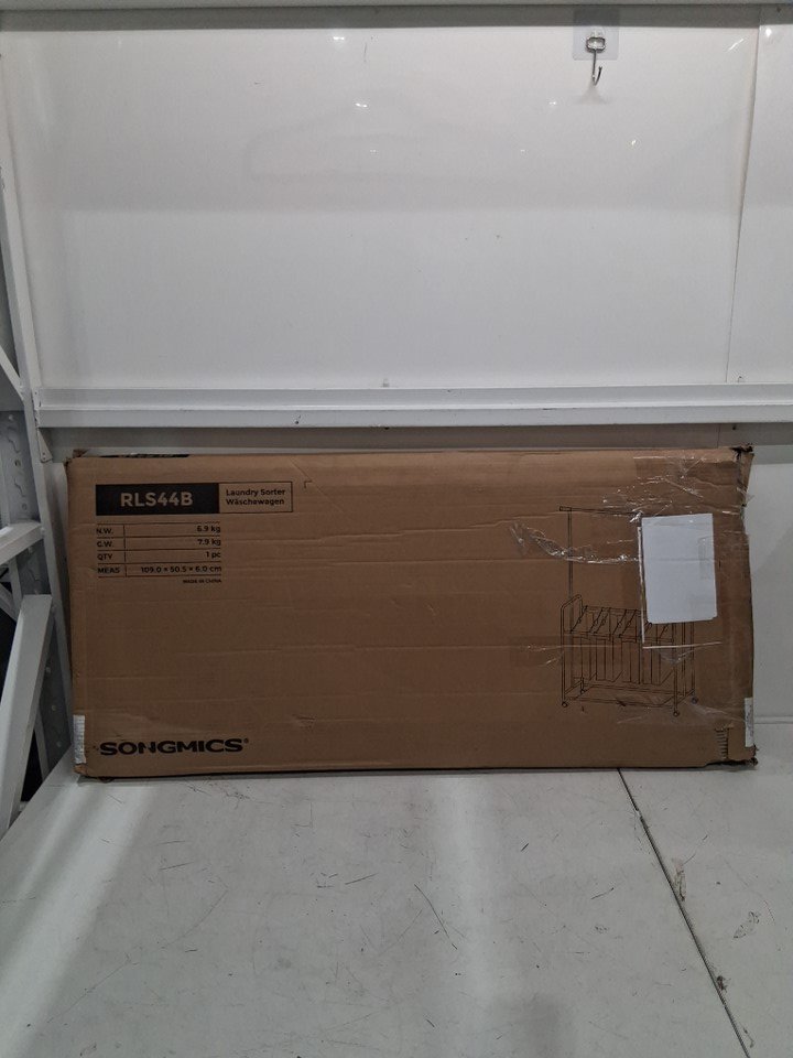 The laundry sorter has imprints from being previously assembled and some scratch marks/paint chips from shipping. It still looks fairly new.