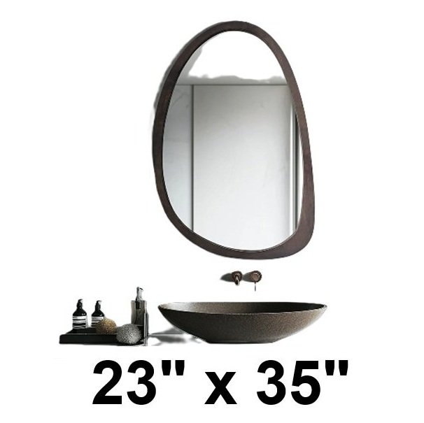 Artlodge oval Solid Wooden Frame Decorative Asymmetrical Glass Mirror - 23" x 35" - dark brown (model: YSJ X69)