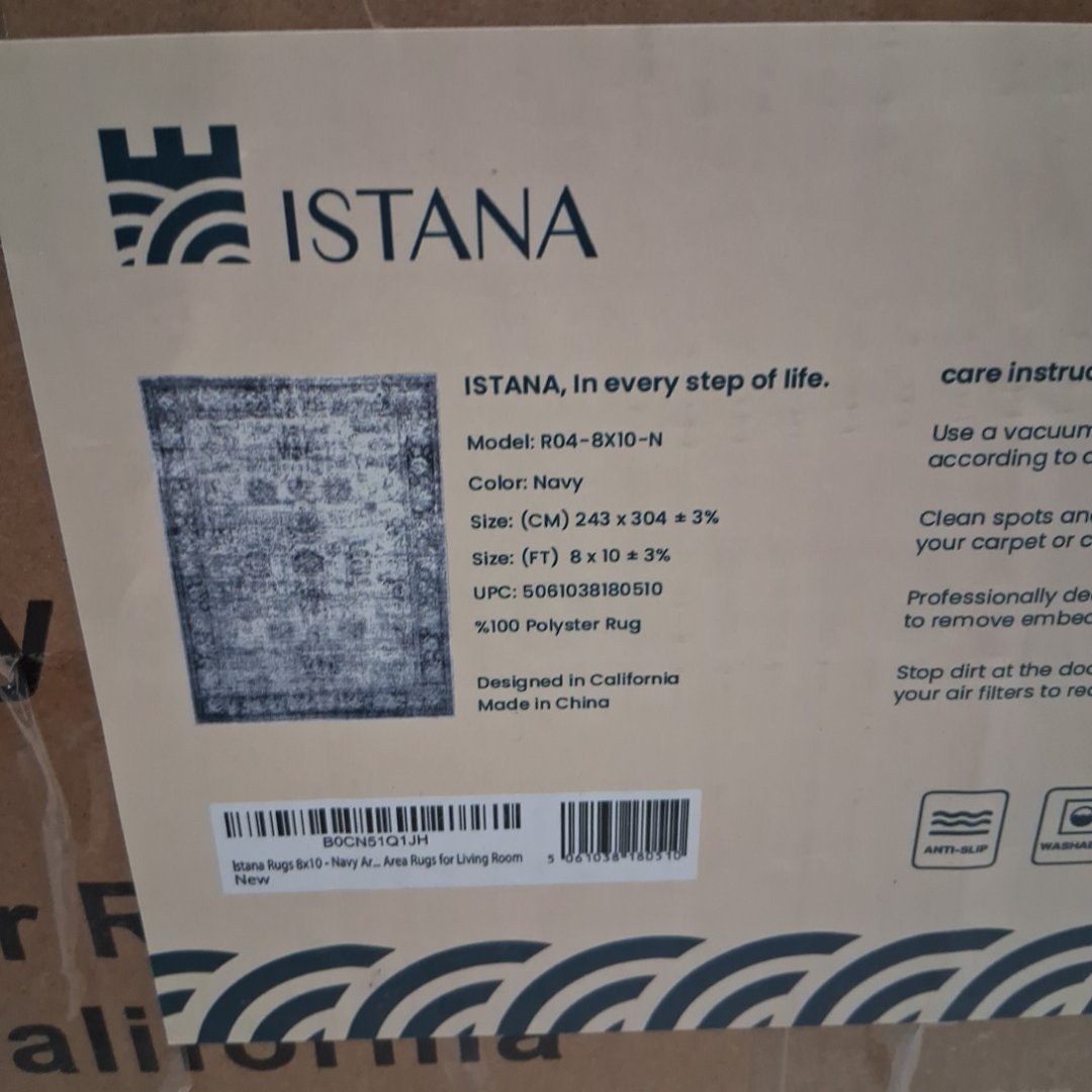 Istana Elegant Non Slip Area Rug - 10FT X 8FT - NAVY (MODEL: R04-8X10-N)