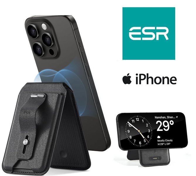 ESR halolock magsafe geo wallet stand for iphone 12/13/14/15 - Black (model:2k609)