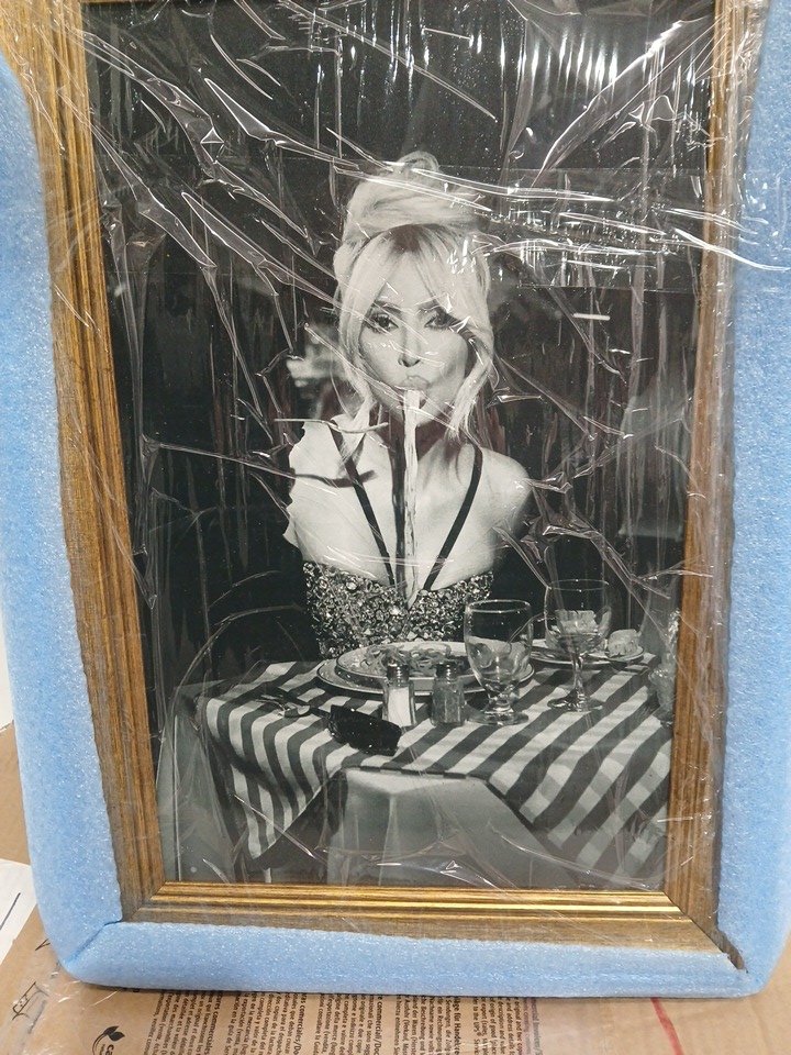 KIM KARDASHIAN EATING PASTA PHOTO - 20" X 14" - GOLD FRAME