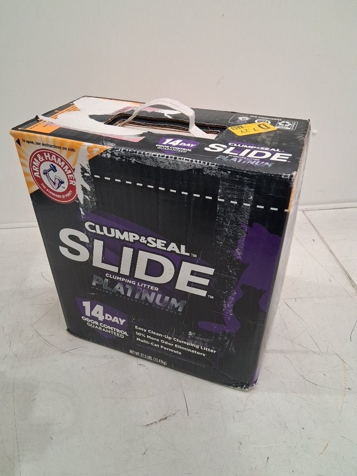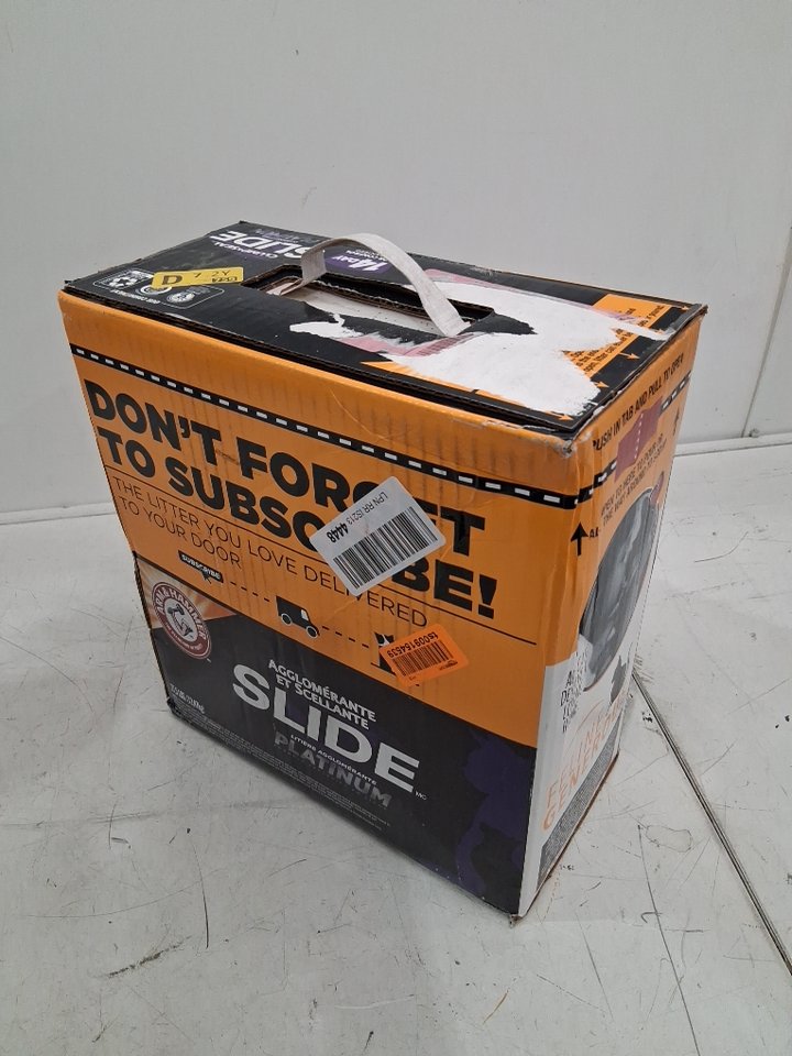 Please note the box appears sealed but there is a small amount of litter sprinkling around the handle which may have slipped out through a crack. The box is still full.
