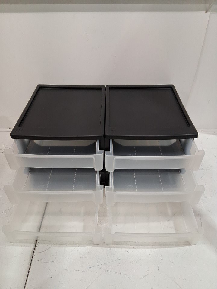 2PK iris usa 3-Drawer Stacking Desktop Organizer - 13" x 10.5" x 9.5" - BLACK/CLEAR (MODEL: CDD-X3)