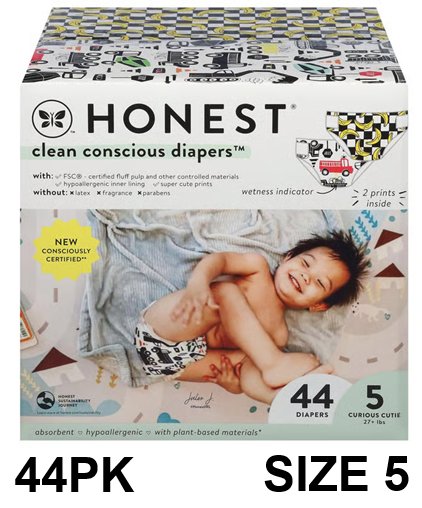 44PK Honest clean conscious Diapers - Size 5 - BIG TRUCKS + SO BANANAS