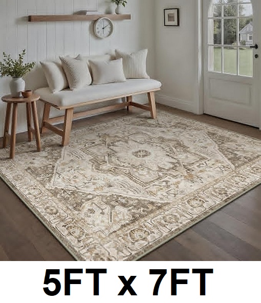 PureCozy Taupe Area Rug Washable Vintage Carpet - 5ft x 7ft - Accent | Taupe