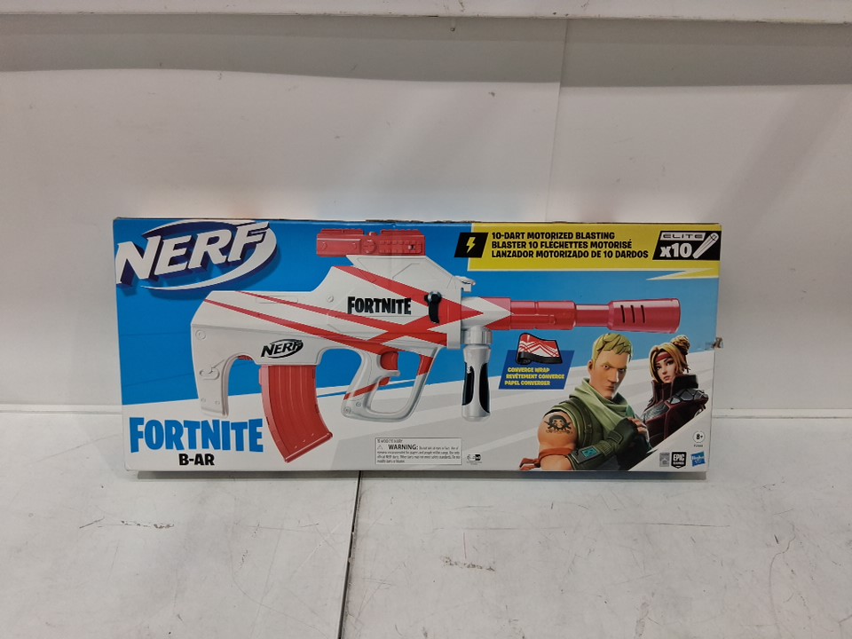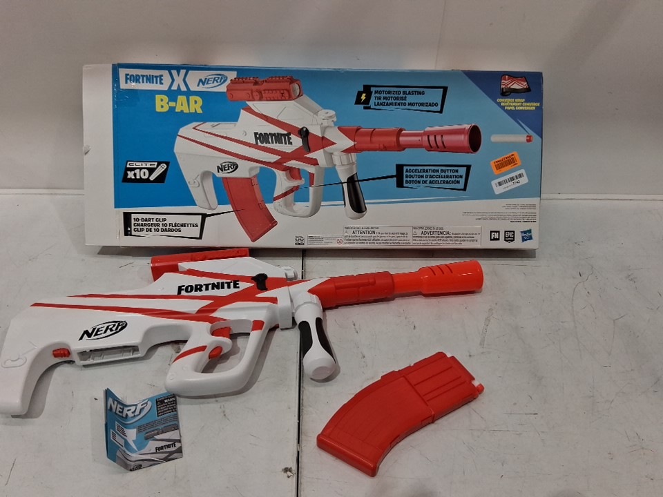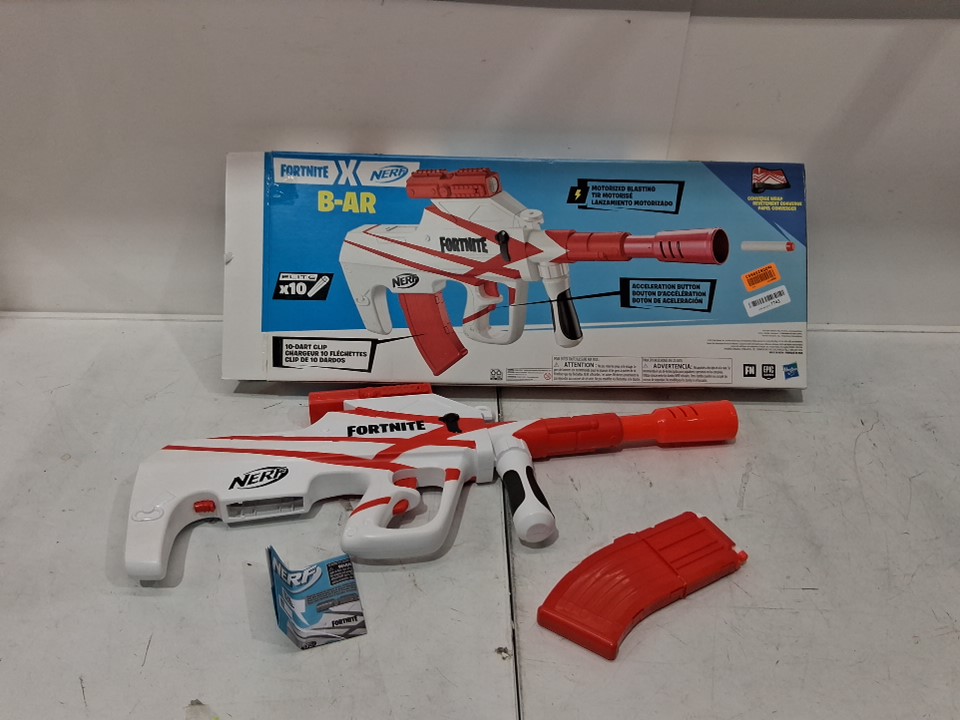 HASBRO NERF FORTNITE B-AR MOTORIZED 10-DART BLASTER WIRTH 8 DARTS - RED/WHITE - (MODEL: F2344)