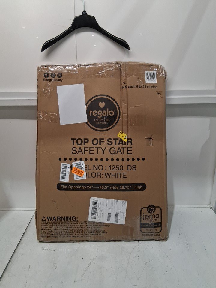 Regalo Extra Wide 2-in-1 Top of Stairway and Hallway Safety Gate with Mounting Kit - 29"x24"-40.5" - White (Model: 1250DS)
