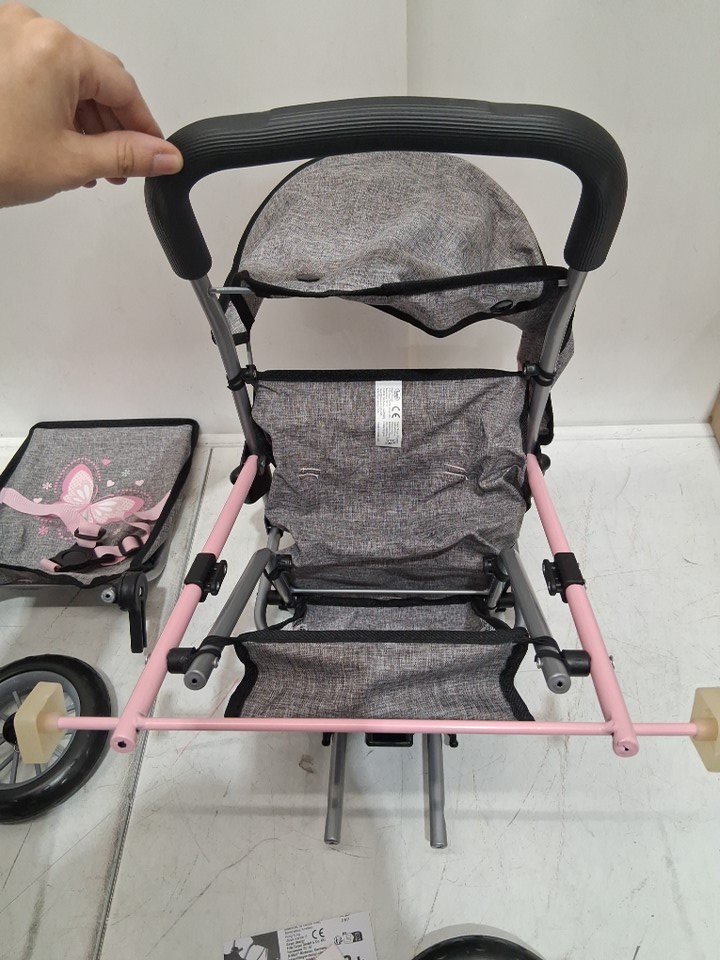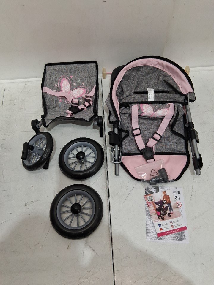 Bayer Duo Double Stroller for Dolls - Sun Canopy - Security Belt - Up to 18” - Pink/grey (model: 39133AA)